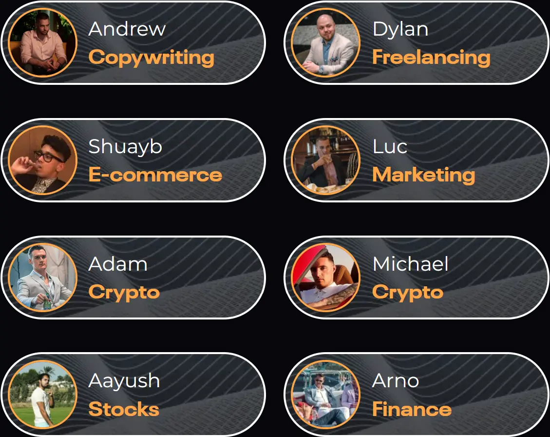 Each professor, personally selected by Andrew Tate, has amassed wealth exceeding $1,000,000+ through the strategies they share within The Real World.